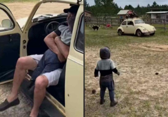 EMOCIONANTE – Avô dirige 600km de fusca para levar quadriciclo ao netinho