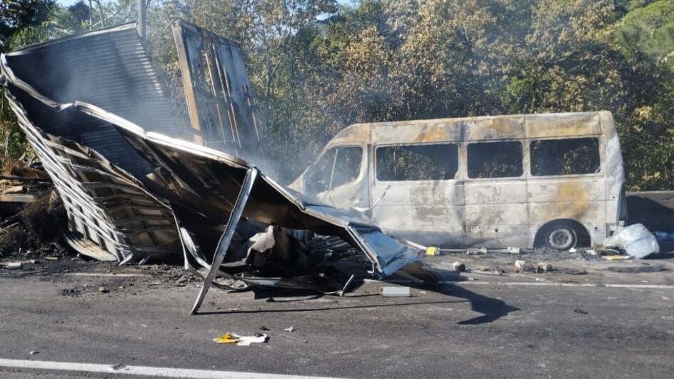 A ação rápida evitou uma tragédia ainda maior. Minutos depois, o fogo se alastrou completamente e destruiu a van. De acordo com a PRF, o motorista conseguiu conduzir os passageiros para um local seguro às margens da rodovia, onde receberam os primeiros atendimentos.