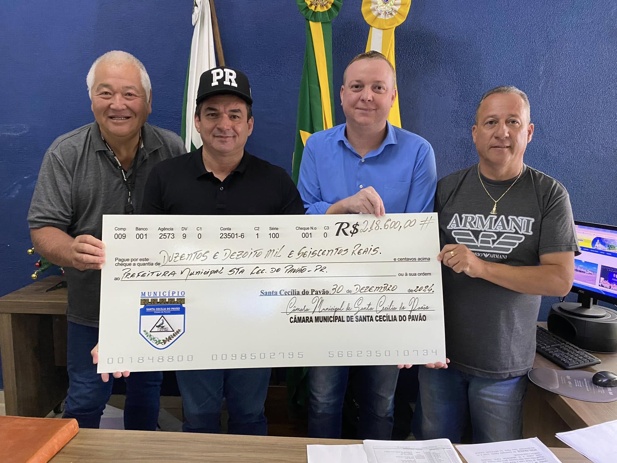 SANTA CECÍLIA DO PAVÃO – CÂMARA DE VEREADORES DEVOLVE R$ 218.600,00 PARA A PREFEITURA MUNICIPAL